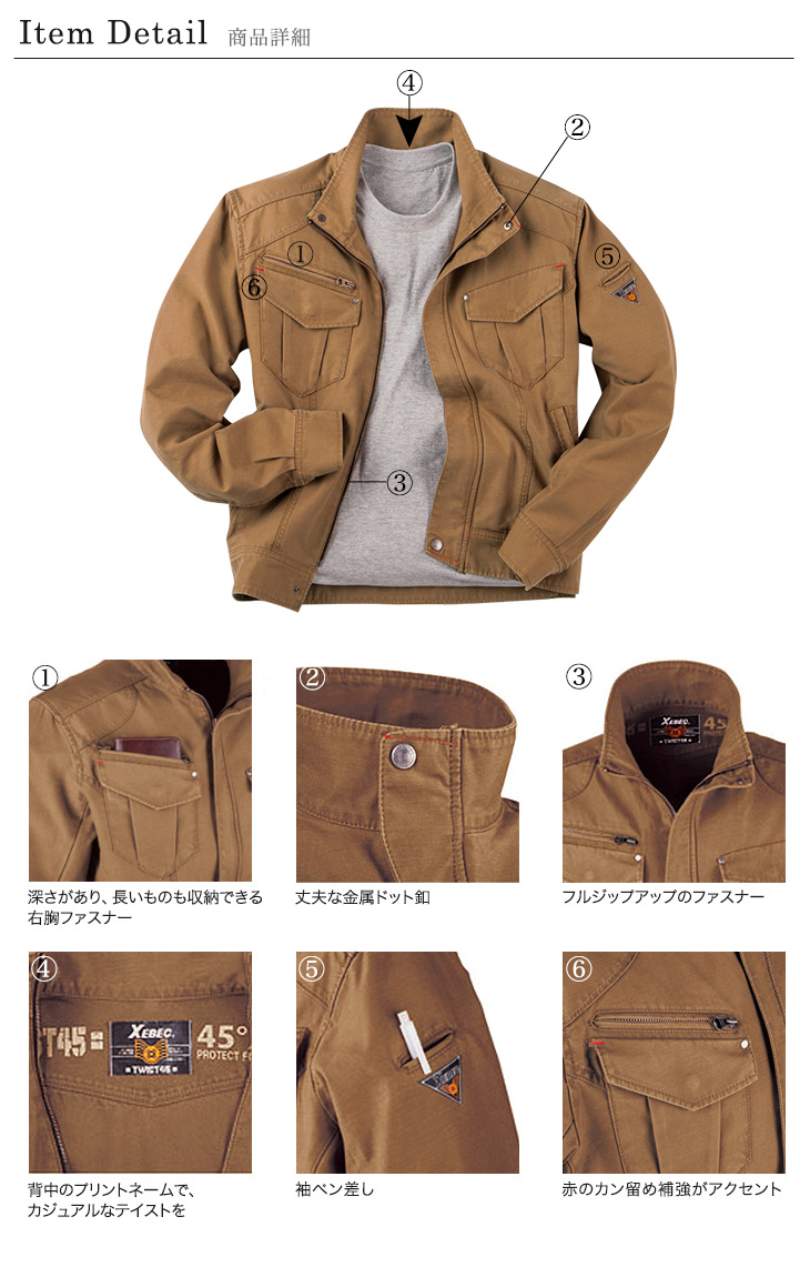 作早2015AW,ジーベック,長袖ブルゾン,秋冬,綿100%,かっこいい,洗い加工,立体裁断,モカ,ストーンブラック,ベージュ,鉄工,機械,大工,建築,