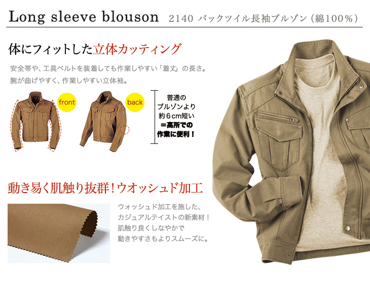 [秋冬用]バックツイル長袖ブルゾン[綿100%](02-2140)