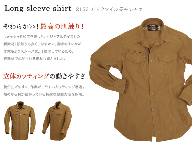 作早2015AW,2153シリーズ,ジーベック,春夏用,綿100%,カジュアル,かっこいい,長袖シャツ,モカ,シルバーグレー,ストーンブラック,現場服,大工,