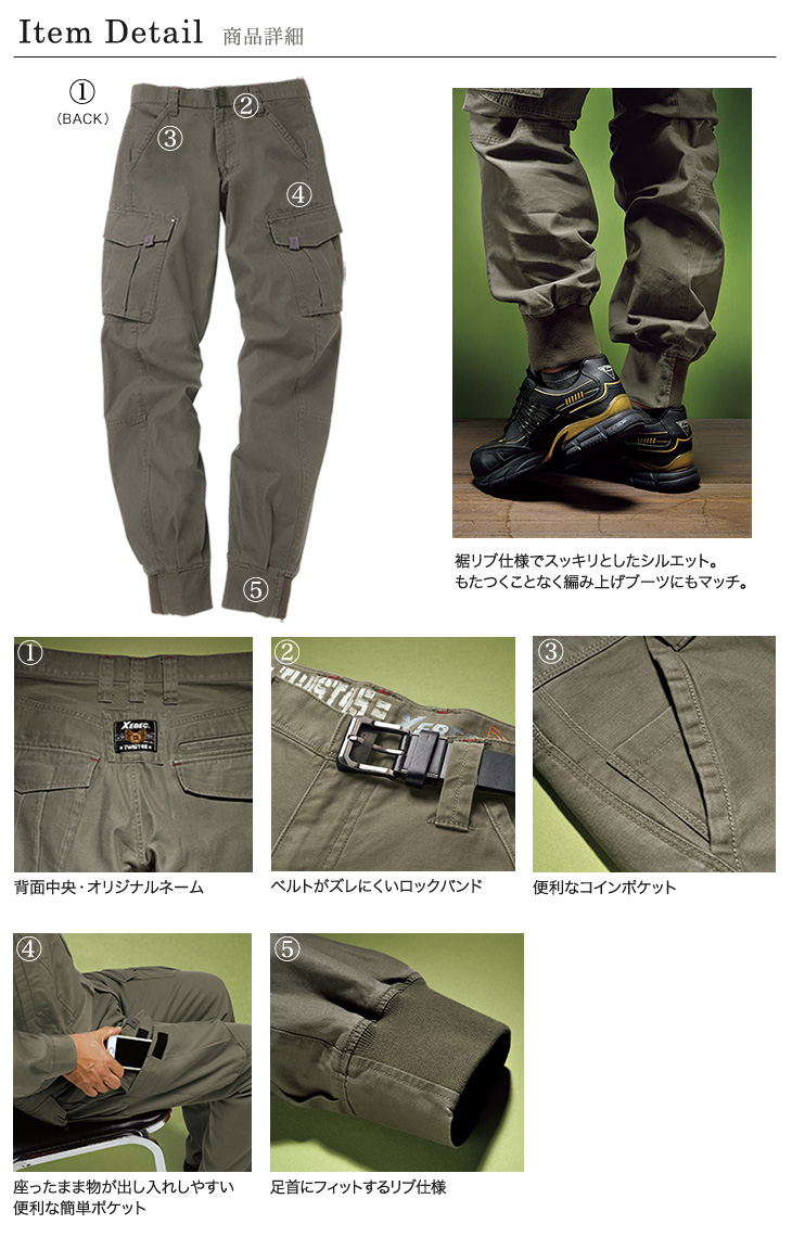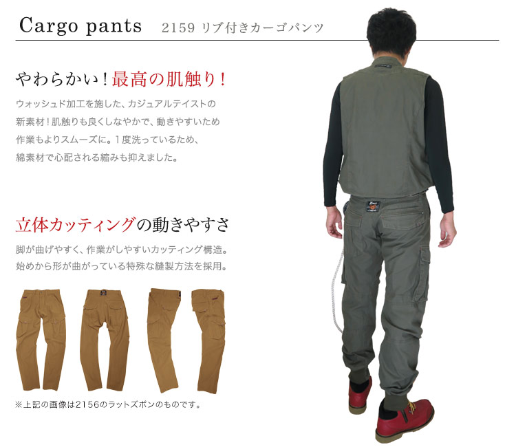 【在庫限り】[春夏用]リブ付きカーゴパンツ(02-2159)