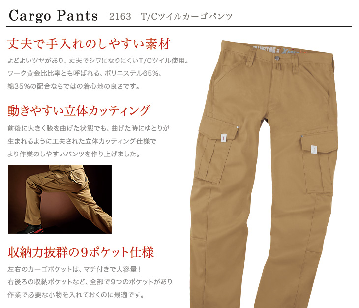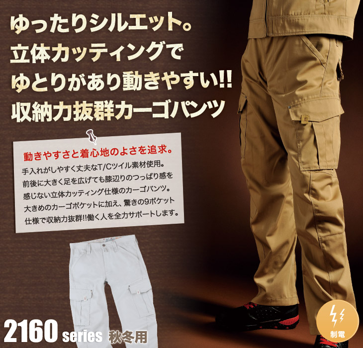 作早2015AW,2160シリーズ,ジーベック,かっこいい,ラットパンツ,カーゴパンツ,おしゃれ,キャメル,シルバー,グレー,秋冬用,帯電防止,立体カッティング