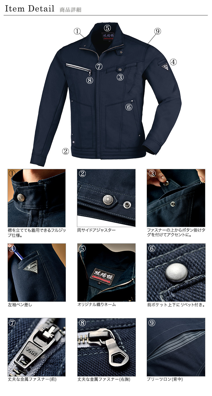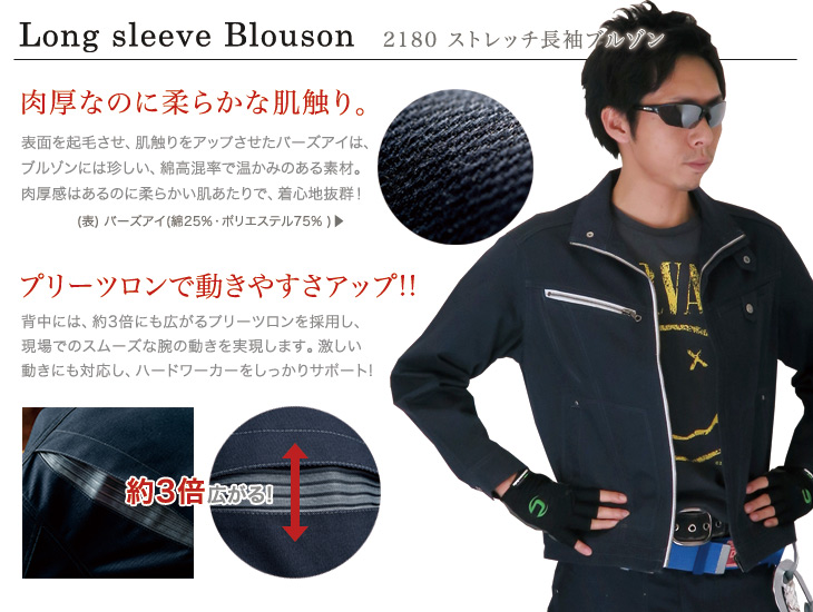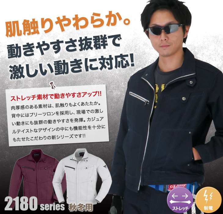 2180シリーズ,ジーベック,ブルゾン,長袖,かっこいい,おしゃれ,秋冬用,ネイビー,シルバーグレー,エンジ,ストレッチ