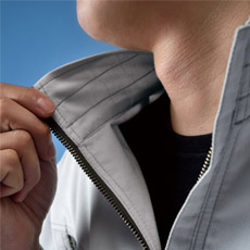 フロントファスナーはフルジップ仕様で、襟を立てての着用も可能