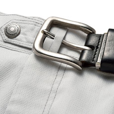ピンをループの穴に通し、ベルトのズレを抑えるロックバンド仕様