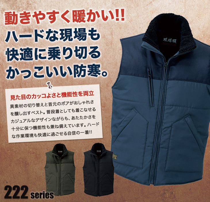 ジーベック,防寒,ベスト,かっこいい,カジュアル,222シリーズ,コン,紺,クロ,黒,OD,ブラック