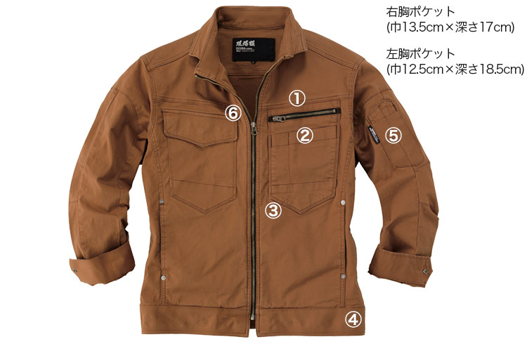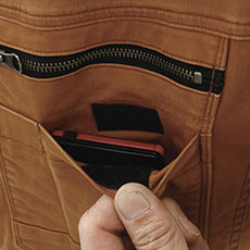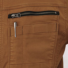 左胸ポケットはファスナー仕様で物が落ちにくい。