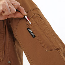 両脇内ポケット仕様で、左内ポケットにはタブ付きで落ちにくい仕様に。
