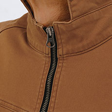 フルジップアップの襟ファスナーでホコリなどの侵入を防ぎます。