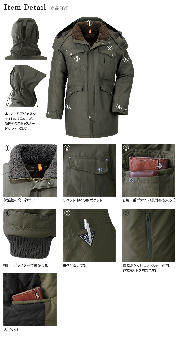 ジーベック,防寒,XEBEC,コート,カーキ,クロ,黒,ブラック,ダークグレー,グレー,灰,トップサーモ,キルティング