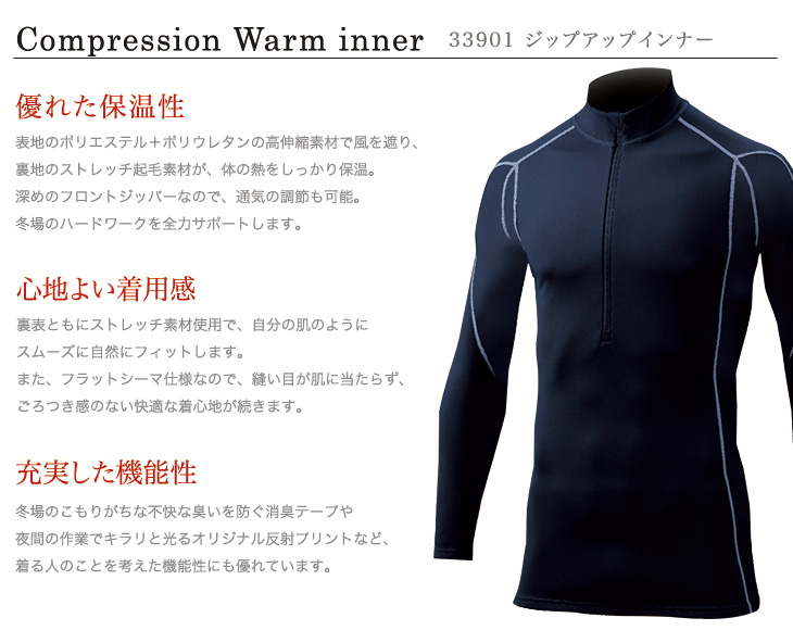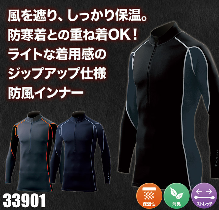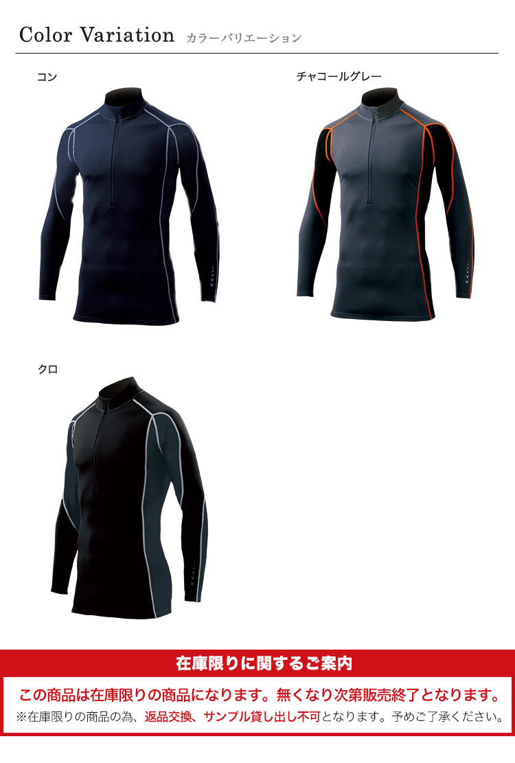 ジーベック,インナー,コンプレッション,防風,防寒,裏起毛ストレッチ,消臭テープ,コン,紺,クロ,黒,チャコールグレー