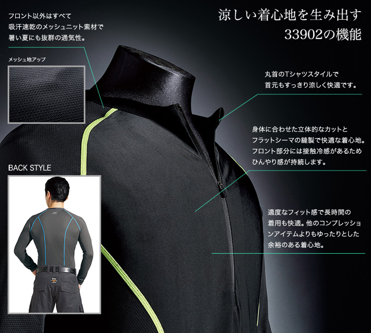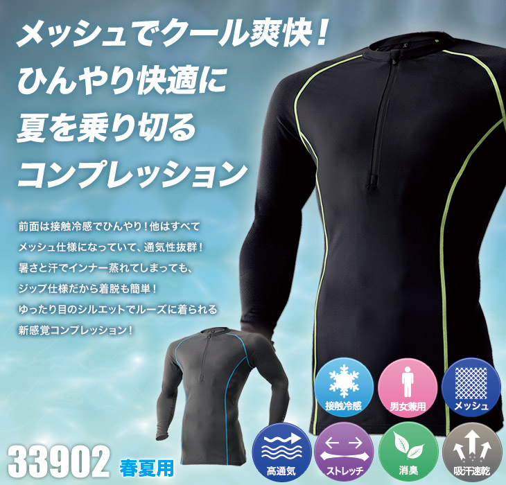 ジーベック,春夏用,コンプレッション,インナー,伸縮,吸汗速乾,接触冷感,抗菌防臭,ブラック,グレー,建設,建築,鉄鋼,機械,運送,倉庫,営業,配達,農業,大工