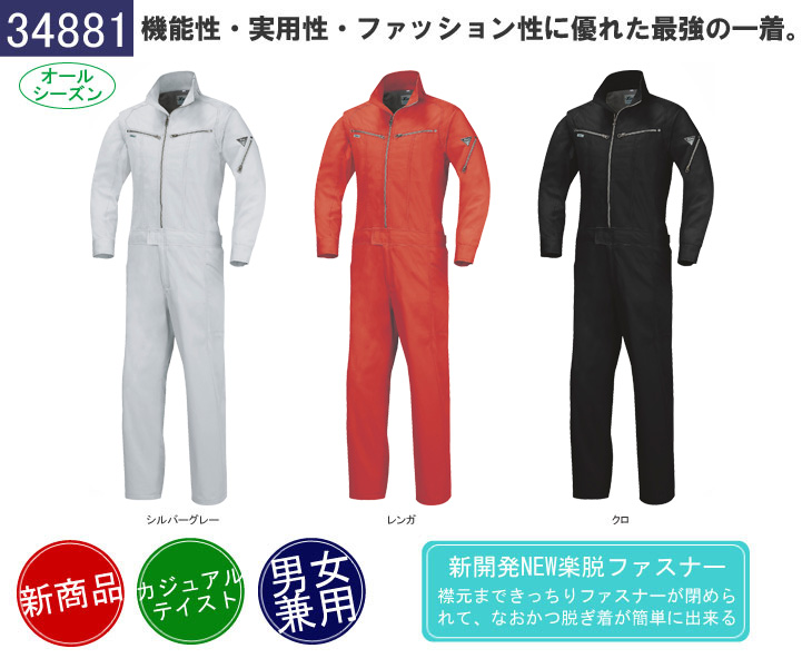 【在庫限り】楽脱ファスナーつなぎ(02-34881)