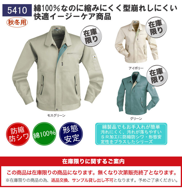 作早2015AW,5400XEシリーズ,長袖ブルゾン,ジーベック,秋冬用,5400シリーズ,綿’Sパワー,綿100%,ソフト風合い,速乾性,SR加工,防縮防シワ,形態安定性,建設,土木,鉄工,溶接,機械