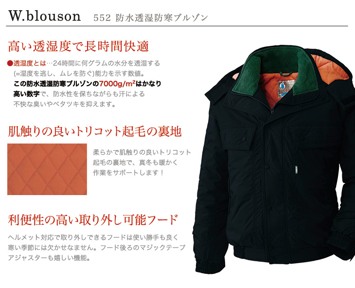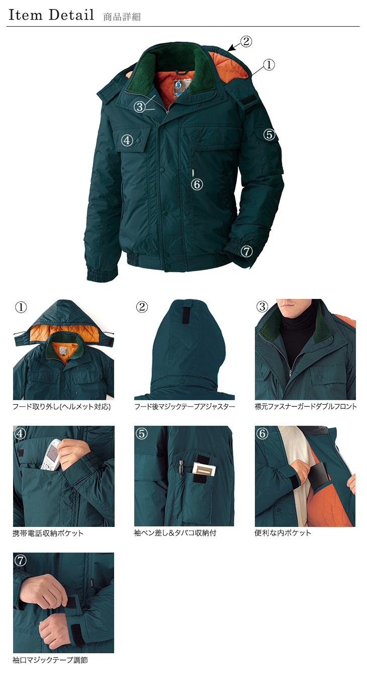 防寒服,ブルゾン,ジーベック,秋冬用,防水性,寒冷地仕様,軽量防寒,透湿度7000g,耐水圧1000mm,建築,建設,土木,農業,鉄工,機械,営業,配達