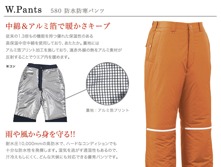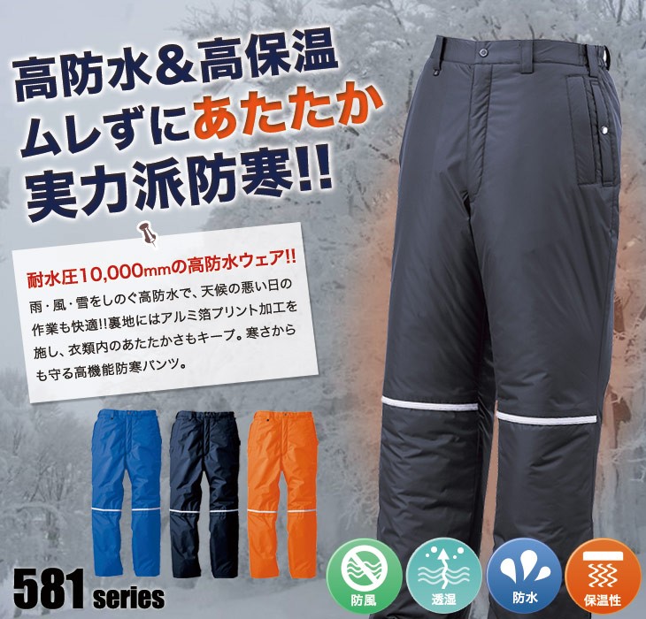 581シリーズ,防寒,パンツ,オレンジ,チャコールグレー,ブルー,青,コン,紺,防水,防寒,保温,防風