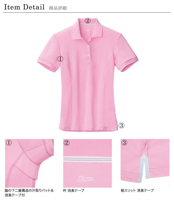 作早2015AW,ジーベック,ポロシャツ,半袖ポロシャツ,女性用,レディース,おしゃれ,ライトブルー,ピンク,ライトグリーン,コン,シルバーグレー,消臭,伸縮,吸汗速乾,