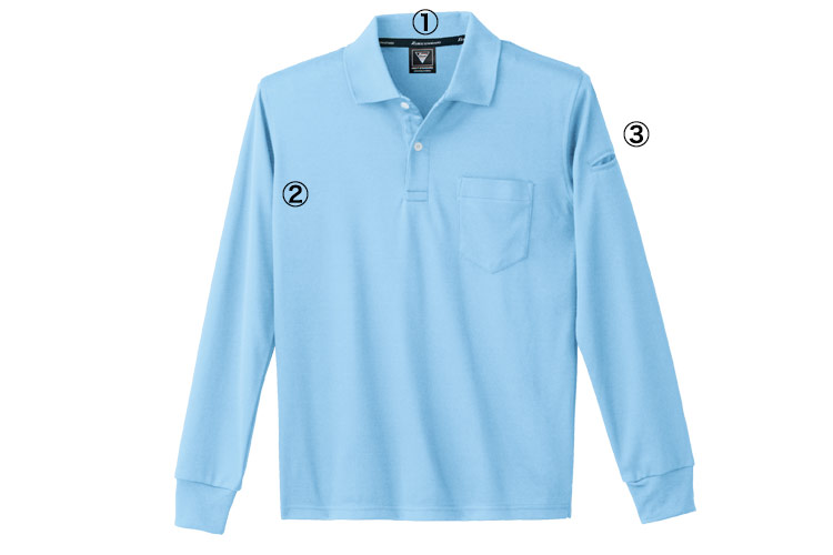 [通年]制電長袖ポロシャツ[[胸ポケット・左袖ペン差し付き][男女兼用](02-6015)