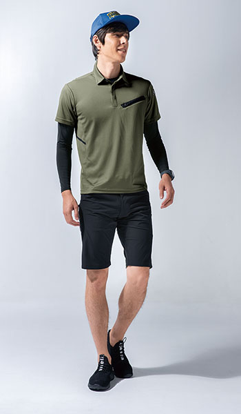 ジーベック、C.ZONEのスポーティな接触冷感ポロシャツ。接触冷感性と通気性の高い素材で着た瞬間からひんやり涼しいワークウェアシリーズ。