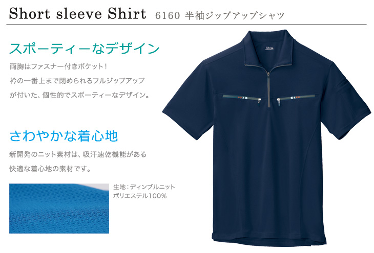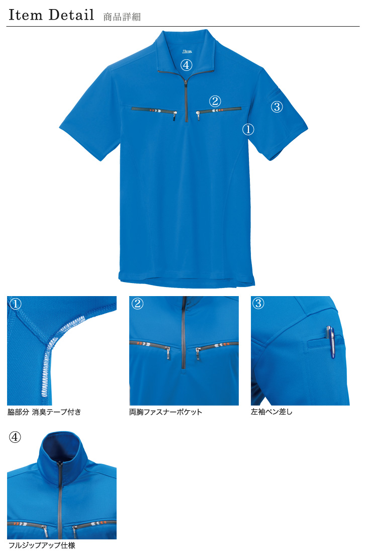 [春夏用]カラーライダース半袖ジップアップシャツ(02-6160)
