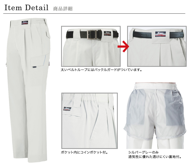 カーゴパンツ,ジーベック,春夏用,7560シリーズ,ジーベックファンクション,コン,シルバーグレー,ブルー,モスグリーン,サワークロス,メッシュプリーツロン,帯電防止,通気性,吸汗性,速乾性,抗菌防臭,バンザイカット,建設,建築,運送,倉庫,電機,設備
