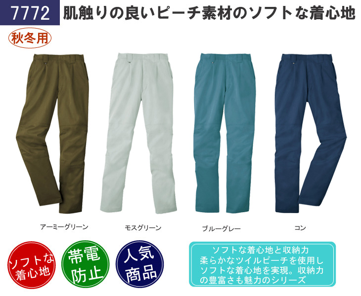 作早2015AW,スラックス,パンツ,ジーベック,秋冬用,7770シリーズ,C.ZONE,帯電防止,ソフト起毛,コン,ネービー,ブルーグレー,モスグリーン,アーミーグリーン,クロスゾーン,建設,土木,電気,設備,農業,運送,倉庫,