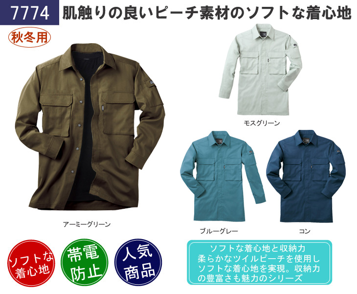 作早2015AW,長袖シャツ,ジーベック,秋冬用,7770シリーズ,C.ZONE,帯電防止,ソフト起毛,コン,ネービー,ブルーグレー,モスグリーン,アーミーグリーン,クロスゾーン,建設,土木,電気,設備,農業,運送,倉庫,