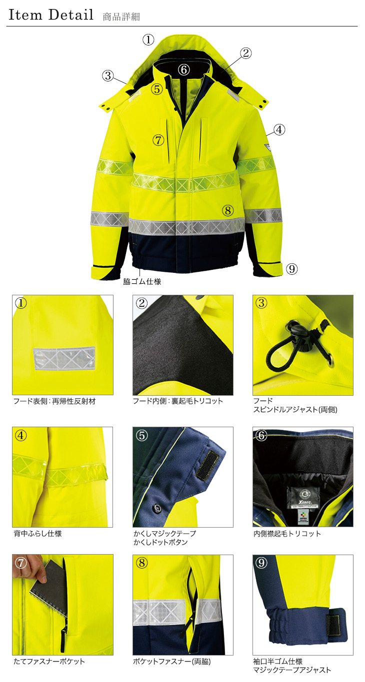 暗闇で光る高スペックの安全防水防寒ブルゾン。