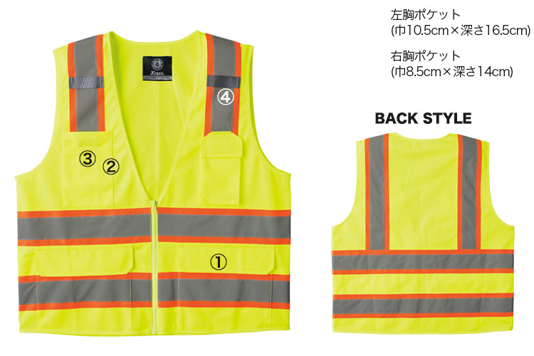 XEBEC,ジーベック,作業服,秋冬用,ベスト,安全服,安全作業服,春夏用,オールシーズン,オレンジ,イエロー,蛍光,JIS T8127基準適合,ISO20471,高視認性,反射,
