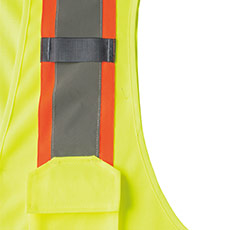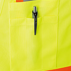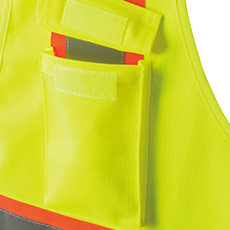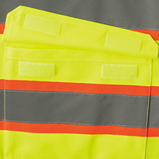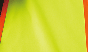 「色度」と「明度」において厳しい数値・物性条件をクリアした蛍光生地。主に日中の視認性をアップさせる効果を発揮。生地には通気性の良いメッシュ素材を使用。