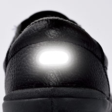 かかと部には視認性を高める反射材を使用。夜間や暗闇での安全性を高めています。