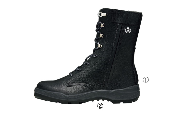 簡単にシューズの着脱ができるサイドファスナー仕様。
