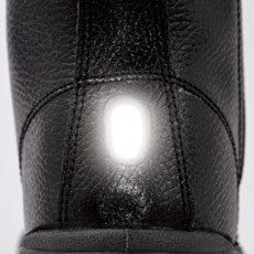 かかと部には視認性を高める反射材を使用。夜間や暗闇での安全性を高めています。