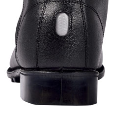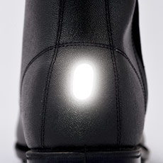 かかと部には視認性を高める反射材を使用。夜間や暗闇での安全性を高めています。
