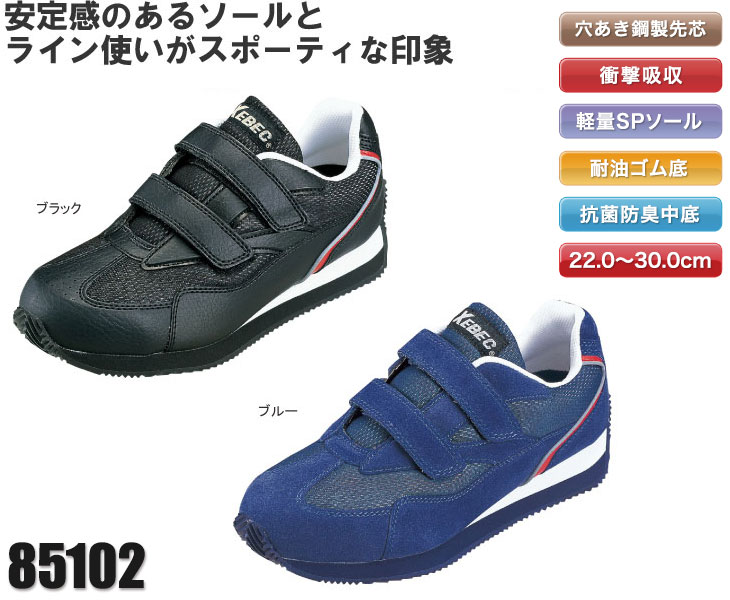 作早2015AW,小さい安全靴,安全靴,ジーベック,セフティシューズ,セーフティシューズ,スニーカー,ブルー,ブラック,穴あき鋼製先芯,耐油性ゴム底,通気性,抗菌防臭中底,軽量SPソール,マジックテープ,男女兼用,蒸れない安全靴