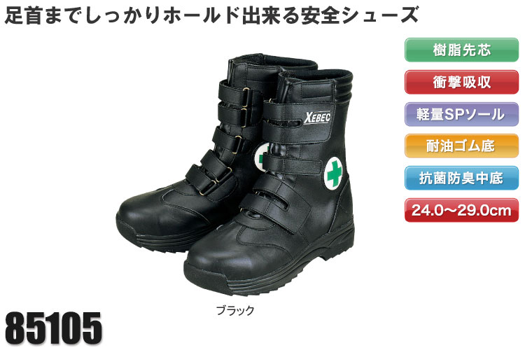 ハイカット,安全靴,ジーベック,革靴,マジックテープ,樹脂先芯,抗菌防臭中底,耐油性,ゴム底,軽量SPソール,衝撃吸収,合成皮革