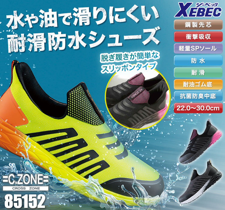 ジーベック「C.ZONEシリーズ」の水や油で滑りにくいセフティシューズ。ミッドソールはクッション性に優れ履き心地も快適です。