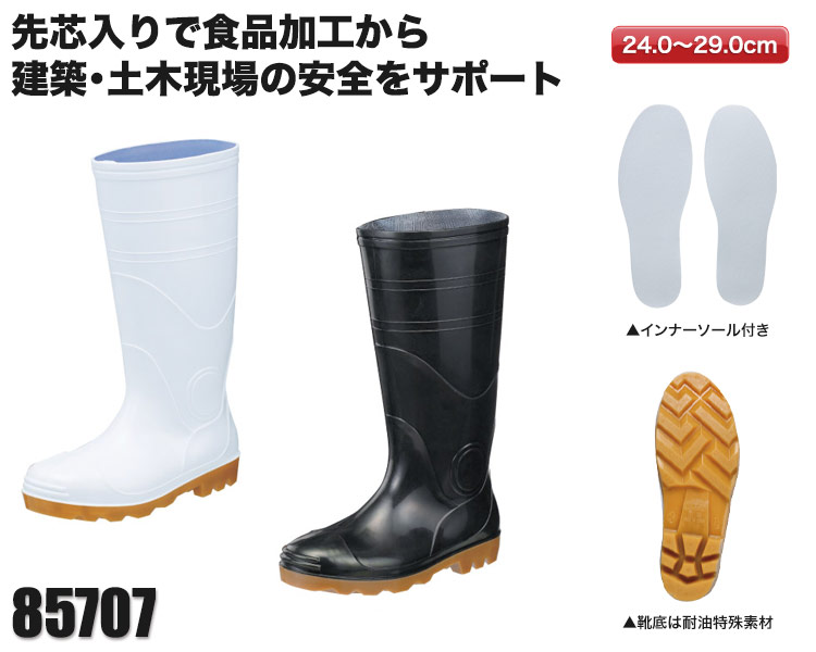 鉄鋼先芯、滑りにくい、耐油性、抗菌性、安全性の安全長靴
