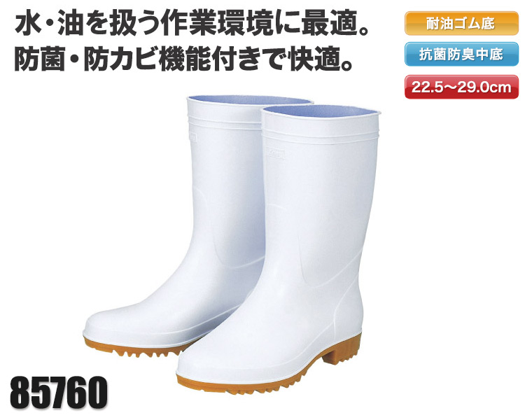 水や油を扱う作業環境に最適!抗菌・防カビ機能搭載で快適な衛生長靴。