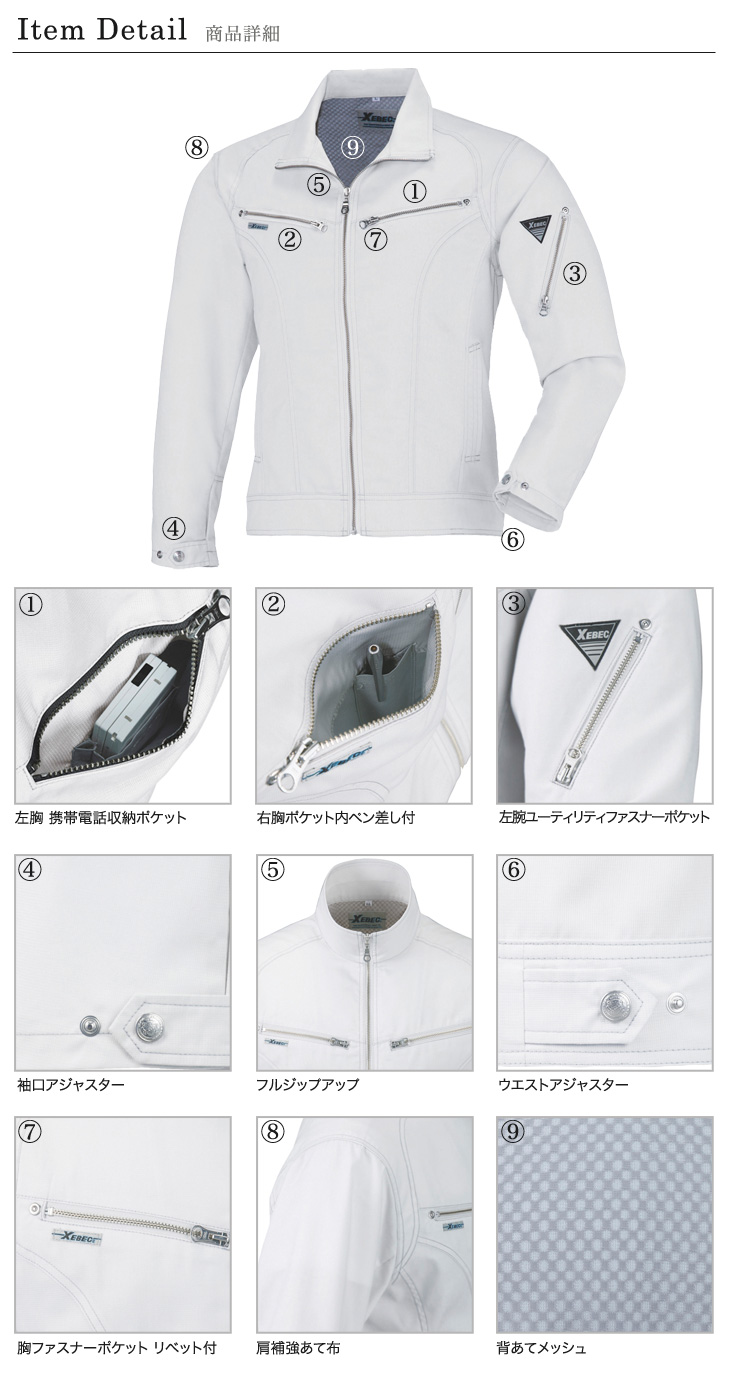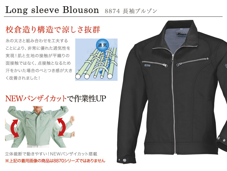 おしゃれ,長袖ブルゾン,ジーベック,春夏用,8870シリーズ,角田,KAKUDA,Kakuda,新商品,通気性,吸汗性,速乾性,清涼,イージーケア,防縮防シワ,ピタリティ,バンザイカット,シルバーグレー,クロ,黒,かっこいい,5L,建設,建築,営業,配達,運送,倉庫