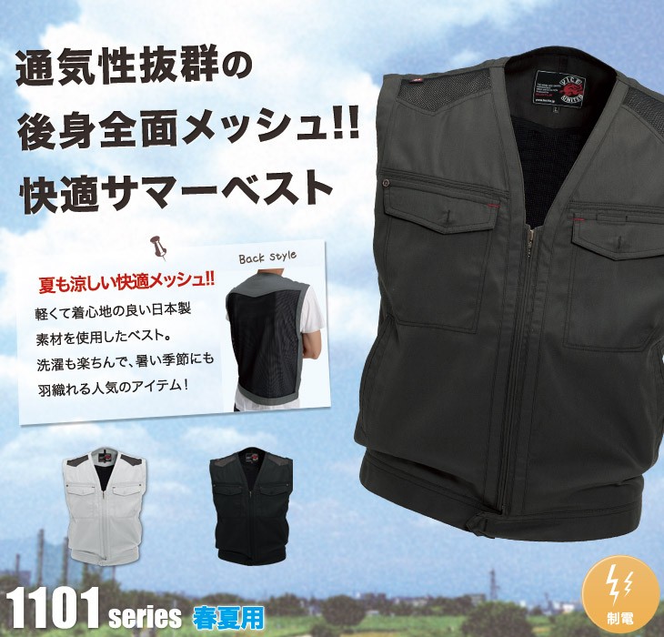 1101シリーズ,バートル,クロカメ,かっこいい,サマーベスト,ベスト,春夏,建設,建築,電気,設備,営業,配達,運送,倉庫,ベージュ,ストームグレー,ブラック,シルバー,大工,作業用ベスト