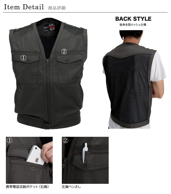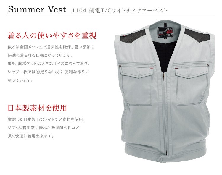 1101シリーズ,バートル,クロカメ,かっこいい,サマーベスト,ベスト,春夏,建設,建築,電気,設備,営業,配達,運送,倉庫,ベージュ,ストームグレー,ブラック,シルバー,大工,作業用ベスト