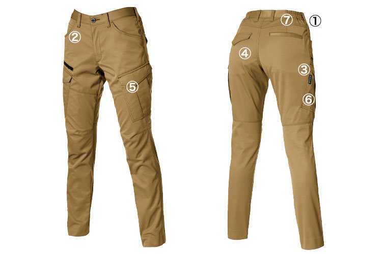 色も形もカッコ良くポケットもたくさんあり大変気に入りました。早速サイズ違いでまた注文しました。仕事が楽しみになりました。ウエストゴムが助かります!
