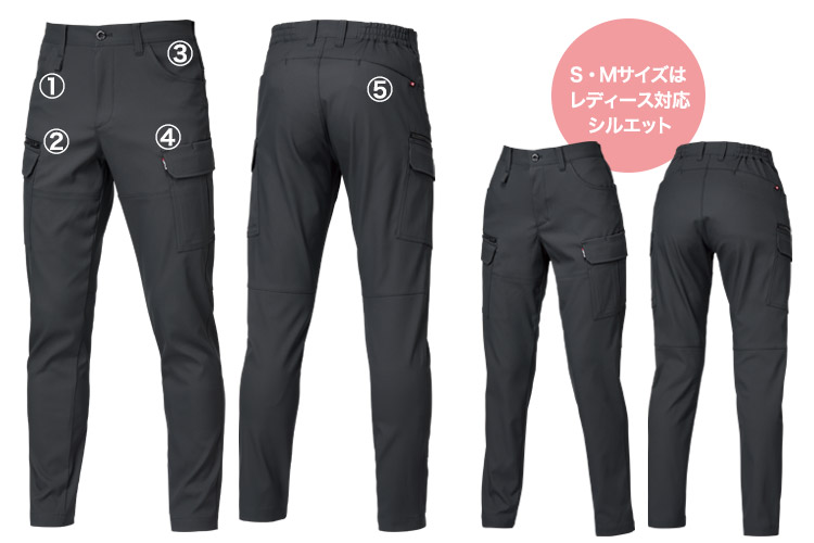 静電気にデリケートな現場でも安心して着用いただけるJIS T8118適合カーゴパンツ。シリーズのジャケットと合わせて企業ユニフォームとして揃えるのもおすすめです!