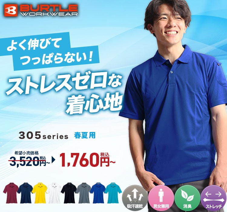 [春夏用]バートル 305 ドライメッシュ半袖ポロシャツ[左袖ポケット付](03-305)