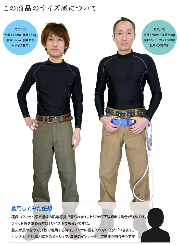 実際着てみたら涼しく、走ればさらに涼しくて感動!コンプレッションインナーウェアとの事ですが、ライディングの姿勢でもキツキツではなく丁度良かったです。バイク専用品は何でも高いので助かりました。