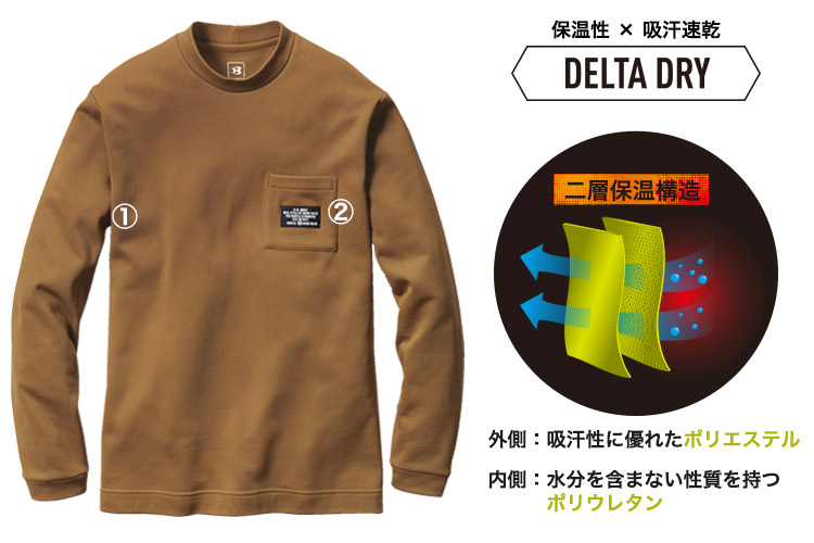保温性の高い裏起毛なので、1枚でライトアウターとして着用することも、インナーとして着用することも出来ます。
