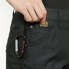 前面の股上を少しだけ短くして、後ろは長めになっているので、 屈んで作業をする際に シャツが出てしまったり、インナーが見えてしまうのを防ぎます。