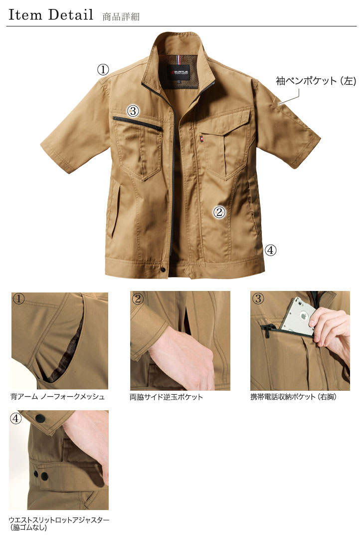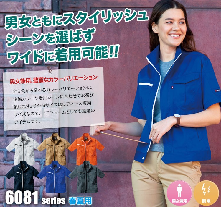 コーディネート自在、カラー豊富なバートルの半袖ジャケット。SS・Sサイズはレディース対応シルエットです。