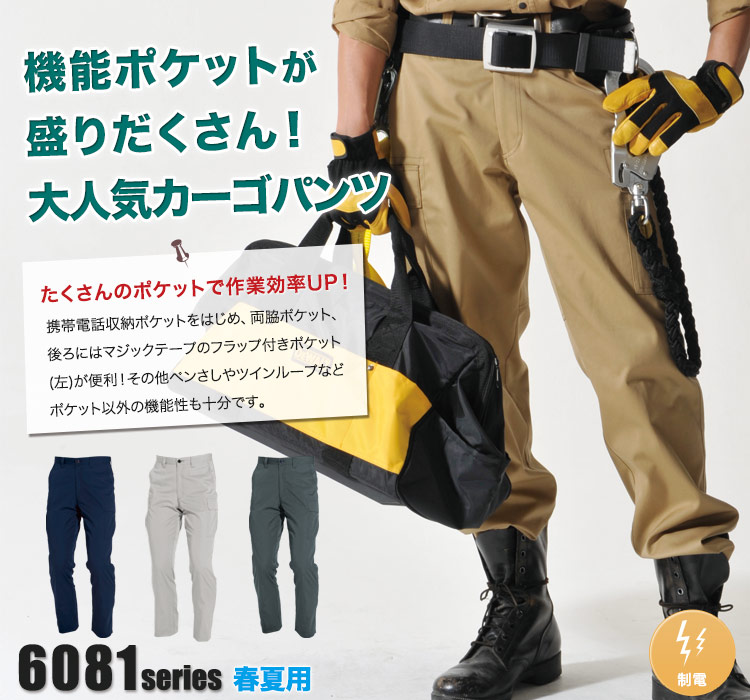 [春夏用]バートル 6086 制電T/Cライトツイルカーゴパンツ[JIS T8118適合](03-6086)