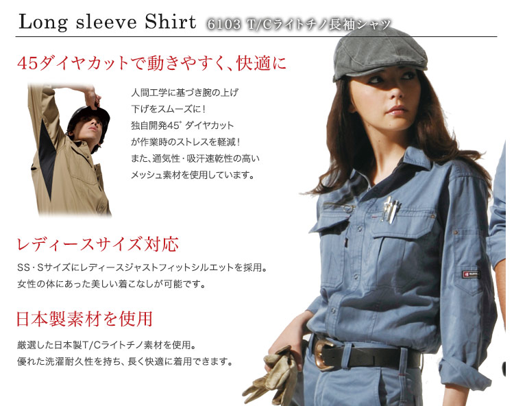 6101シリーズ,バートル,春夏,シャツ,長袖シャツ,かっこいい,おしゃれ,女性,女性用,男女兼用,制電,レディース,帯電防止,建築,大工,運送,営業,